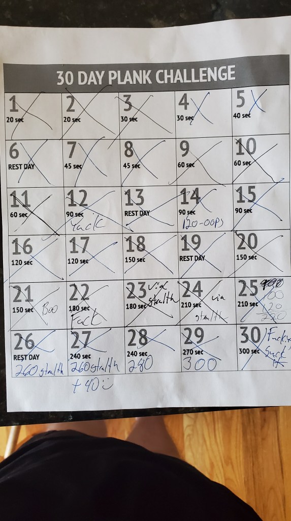 I was fatigued, I was in pain, and I wasn’t going to get better until the challenge was over. It was 25 days into the challenge that I realized that my mile-long preservation runs were not long enough to be considered a full cardio workout, so, in a sense, what I was doing was counterproductive to my fitness goals.